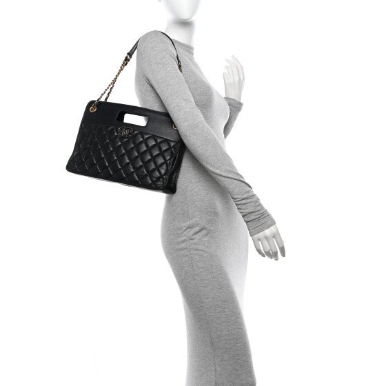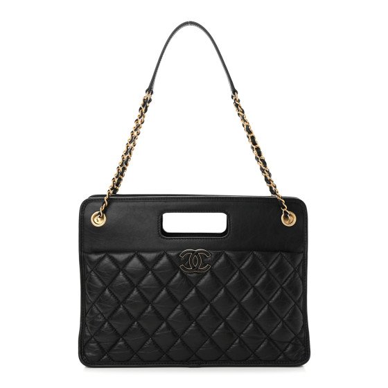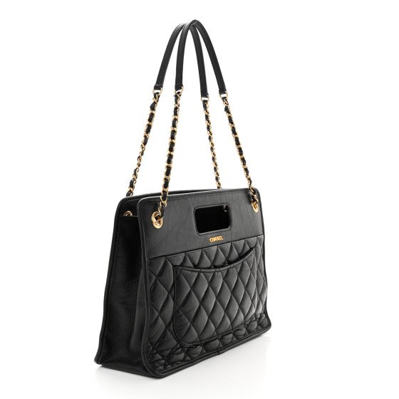 Chanel Aged Calfskin Quilted Graphic Catch Shopping Bag Black