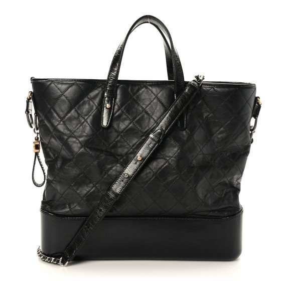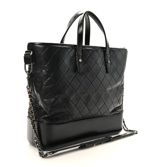Chanel Aged Calfskin Quilted Large Gabrielle Shopping Tote Black