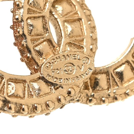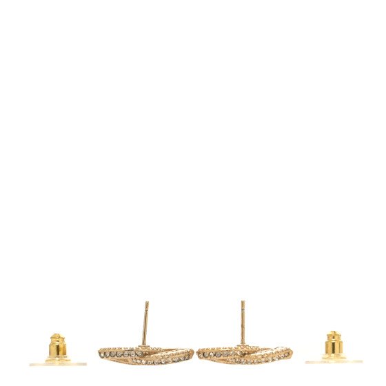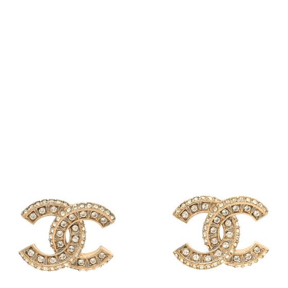 These are Chanel Crystal Timeless CC Earrings in light gold. They feature gold-tone CC logos embellished with clear crystals.