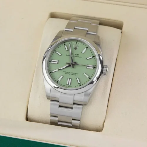 - Clasp: Folding Oysterlock clasp for secure fastening