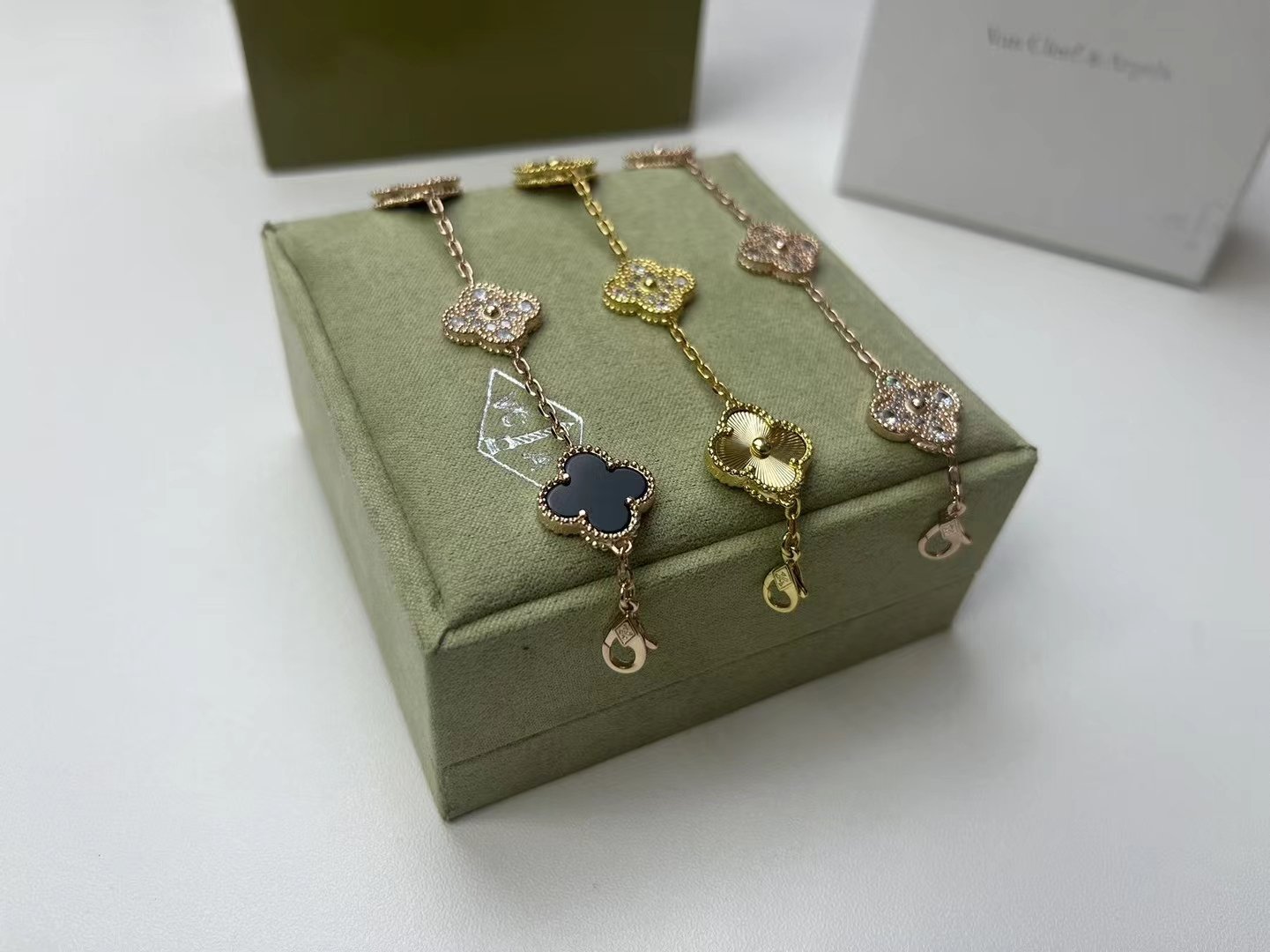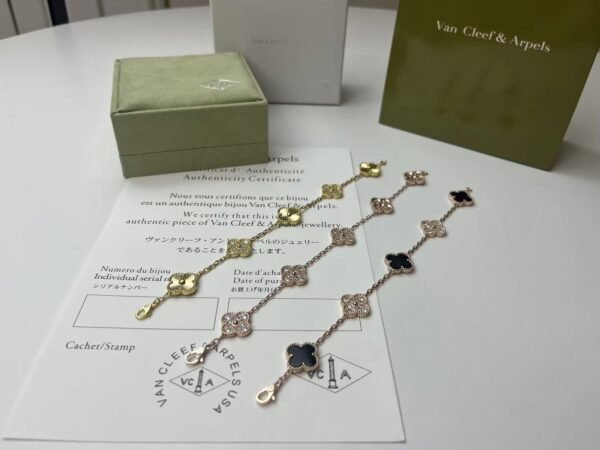 Van Cleef & Arpels five-flower laser gold bracelet 18k gold electroplating process counter version one-to-one quality, the pattern and craftsmanship are top-notch, a super elegant bracelet, definitely ho-top for friends’ gatherings and parties.