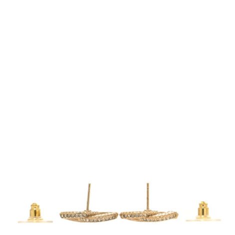 Chanel Crystal Timeless CC Earrings Light Gold